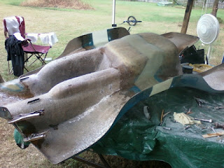 Next comes the body work. Found all spots where it was cracked broken or rubbed through and began to repair them. I used US composites epoxy resin and 3:1 hardener along with their woven roving glass cloth. I believe it was 9 oz cloth there or about anyway. If you have ever used any of there products before you know they work better than anything on the market. I cut the body at the seat and added 6 inches to seat and side areas.